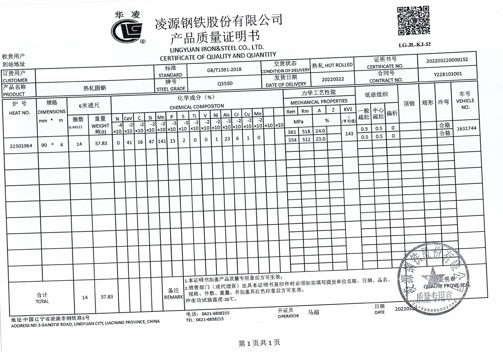 六、凌鋼Q355D圓鋼產(chǎn)品質(zhì)量證明書