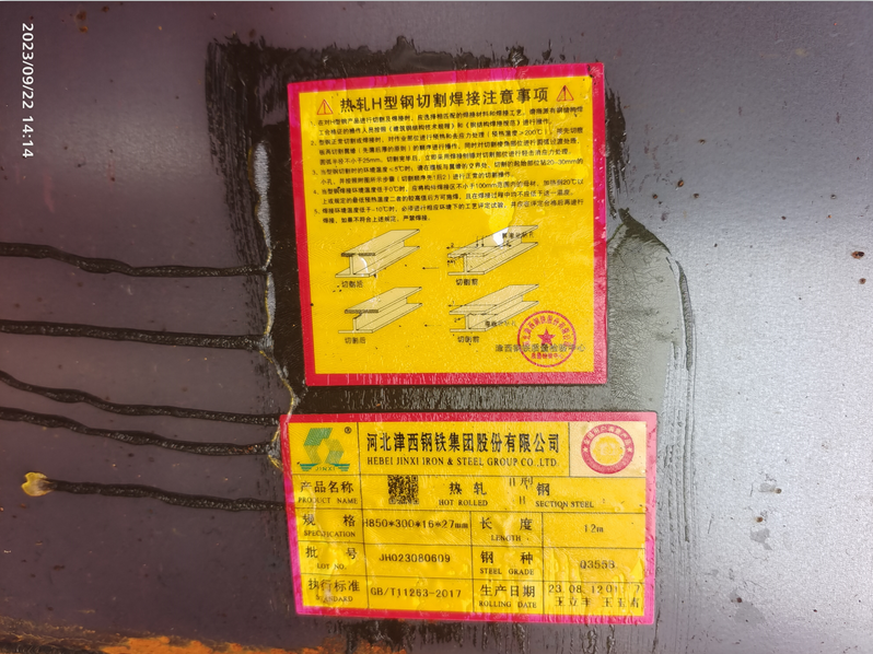 2024年2月26號浙江蘇滬金屬重型H型鋼型號850*300*16*27,非標(biāo)H型鋼產(chǎn)地:日鋼,馬鋼,萊鋼,津西,天柱,東特,安泰,包鋼,寶得。熱軋H型鋼每米重量229公斤,鋼結(jié)構(gòu)H型鋼材質(zhì):Q235B、Q355B、Q355D。H型鋼表示方法:腹板高度850毫米,翼緣板寬度300毫米,腹板厚度16毫米,翼緣板厚度27毫米。
